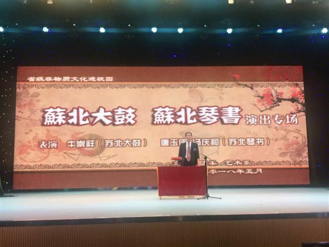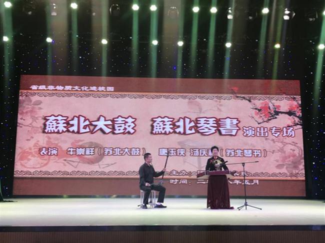 本次活动邀请的三位表演嘉宾分别是中国曲艺家协会会员,江苏省“苏北大鼓”传承人牛崇祥;中国曲艺家协会会员“苏北琴书”传承人汤庆和、唐玉侠夫妇。活动现场,三位戏曲表演艺术家精湛的表演,具有鲜明特色的唱腔,声情并茂,委婉动听,引人入胜。让在场的每一位师生亲生感受到了传统戏曲的无限魅力。