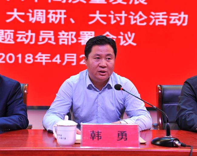 4月27日下午,学校在校礼堂召开全校教职工大会,动员部署“推动六个高质量发展”大学习、大调研、大讨论活动。张广周副校长在会上解读了宿办发[2018]24号《关于开展“推动六个高质量发展”大学习、大调研、大讨论活动方案》。校党委书记、校长史余强对活动开展提出要求。韩勇副书记主持会议。校领导班子、中层干部、全校教职工、部分学生代表参加会议。