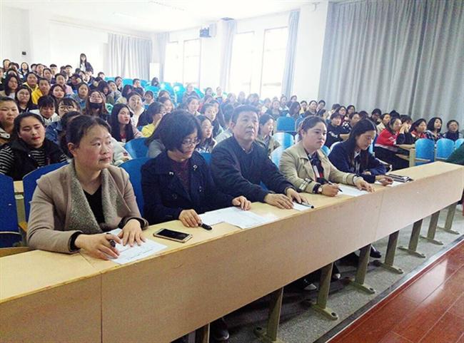3月27日下午,由我校学前教育三系承办的“国学经典诵读”比赛在学校一号教学楼二楼阶梯教室举行。刘文、王海宁、娄静、李静、李雯五位老师担任评委,全校五个系26名选手参与比赛,学前教育一、二、三系250名学生代表观看比赛。