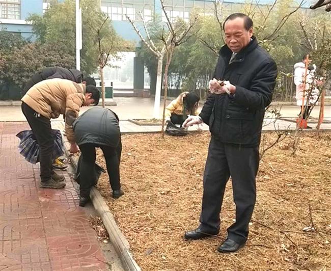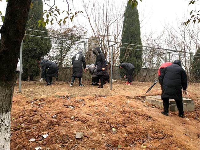 参加活动的师生冒着严寒、顶着细雨清扫清除校园白色垃圾、路面残雪、路牙杂草、堆积落叶等,实现校园卫生全覆盖、无死角。活动影响路过的师生主动投身弯腰行活动中,让校园更加整洁美丽。