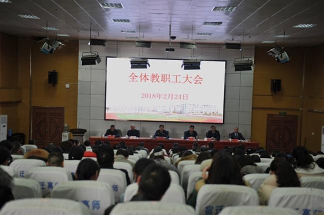 2月24日上午,学校在综合楼三楼会议室召开2018年第一次教职工大会,校党委书记、校长史余强在会上发表讲话,韩勇副书记主持会议。校领导班子、中层干部及全校教职工参加会议。