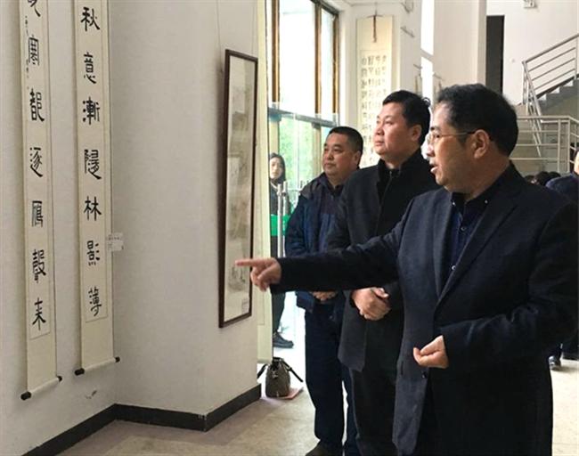校党委书记、校长史余强在致辞中充分肯定了学校加强书画教育的具体措施和取得成绩。在张劲扬、周善超、臧成贤、张峰等一批艺术名师教育下,艺术系的同学们创作出了主题鲜明、内容丰富、风格各异的参展作品,充分体现了作者的艺术功底和创新精神,参展作者中有 8 人作品入选过省级展览,有30 人作品入选过市级展览。艺术系师生在国家、省、市各项书画赛事上捷报频传,硕果累累。史校长希望大家充分借鉴此次书画展作品的艺术特色,创造出更多更好的书画艺术精品。