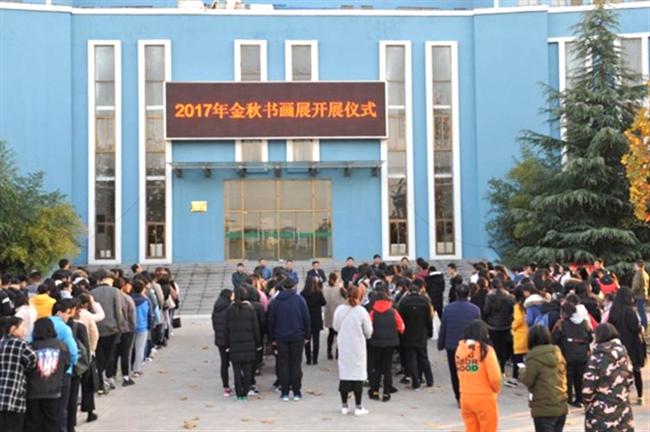 11月23日下午,学校2017年"金秋书画展"开展仪式在校大礼堂前举行。校党委书记、校长史余强在仪式上讲话,陆剑波副校长主持仪式,党委副书记韩勇、各部门负责人及部分师生代表300余人出席开展仪式。