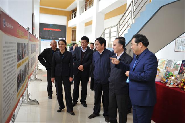 我校党委书记、校长史余强向宋副书记一行介绍了学校党的建设、升专创建、专业论证、扶贫等工作情况。宋副书记一行观看了学校办学情况展板,查阅了学校扶贫档案和学校近期获得的各项奖励。在学校雕塑室了解了学校中心广场改造情况,观看了张劲扬老师雕塑作品及学生雕塑训练,在学校书画展室观看了教师书画展。宋副书记充分肯定了学校取得的办学成绩和扶贫成绩,希望学校继续加强校园特色文化建设,加大办学硬件及软件建设力度,加快发展速度,在专业论证和升专创建上取得更大成绩。