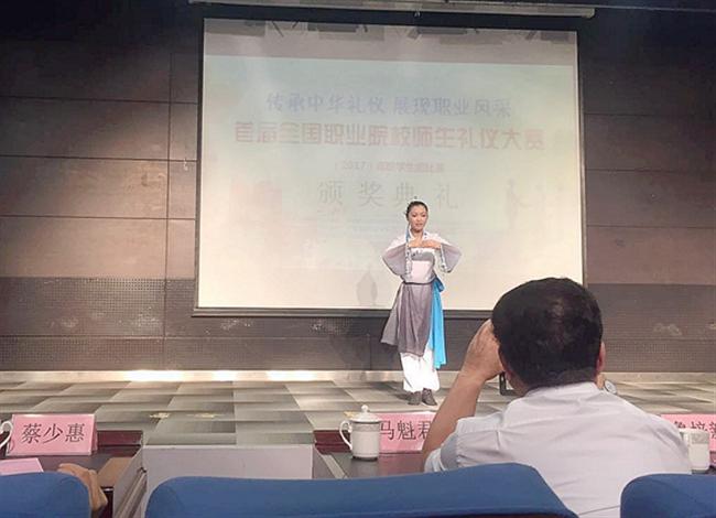 我校代表队在集体项目中荣获礼仪操创编、团体项目二等奖,获得情景剧表演三等奖。在个人项目中,杨欢获得职业风采、基础仪态、个人项目三等奖。马慧清获得基础仪态、个人项目三等奖。在传统礼仪项目中周梦娣荣获二等奖,并以其出色的表现受邀参加闭幕式展演。杨欢因在礼仪知识竞赛中获得满分,荣获“礼仪知识竞赛能手”荣誉称号,学校获得团体三等奖。