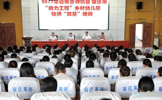 7月12日上午,2017年江苏省省市合作“助力工程”宿迁市乡村幼儿园教师“双基”培训开班典礼在我校综合楼会议室举行。市委教育工委庄永之副书记出席并讲话,宿迁高师党委韩勇副书记致欢迎辞。来自全市各县区的120名学员参加典礼。王珍代表学员作表态发言。我校培训处严芳处长主持典礼。