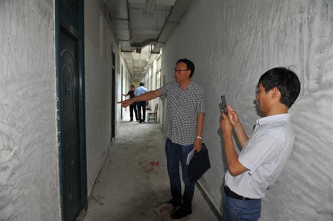 7月20日下午,市教育局电教中心周鸿飞主任等一行三人到学校检查学校暑期改造项目。校党委委员、副校长张彦芝带领党政办公室、教务处、后勤处、智慧校园建设办公室等部门负责人陪同检查。