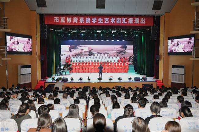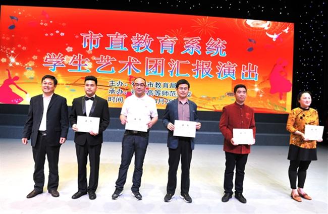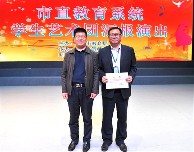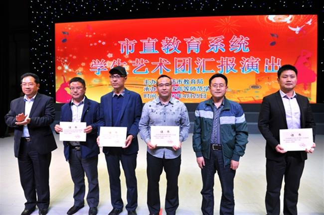 4月25日下午,市直教育系统学生艺术团汇报演出在我校大礼堂成功举办。市委教育工委书记、市教育局局长汤成军发表了热情洋溢的开幕辞。市教育局领导班子成员、各处室负责人、各市直校校长及分管校长、我校学生代表800余人观看演出。