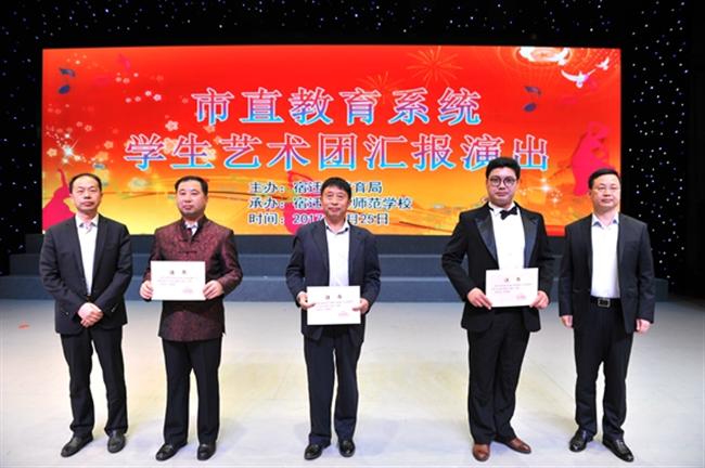 经赵吕森等6位专家评委的公正评定,评出了宿迁高师合唱、宿迁高师舞蹈、钟吾国际学校合唱、宿迁经贸高职学校合唱、宿迁中学合唱5名特等奖、5名一等奖及3名二等奖。我校荣获优秀组织奖。汤成军局长为获得特等奖的代表队颁发证书,我校党委书记、校长史余强、市委教育工委副书记庄永之为获得一等奖代表队颁发证书。市教育局副局长张德超为我校颁发优秀组织奖,市教育纪工委书记李正阳、市教育局副调研员马祥云为获得二等奖的代表队颁发证书。