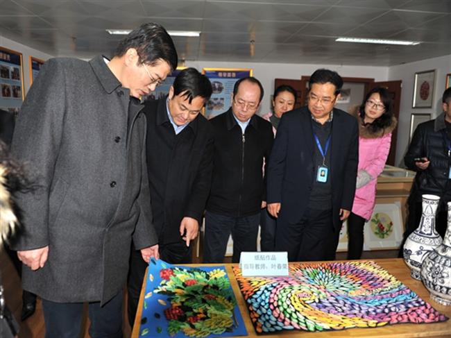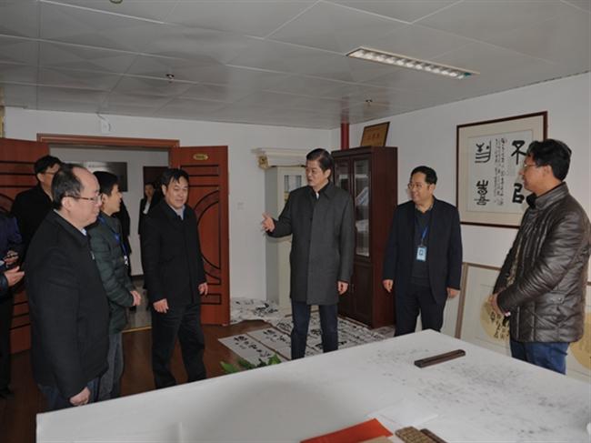 魏书记在学校综合楼一楼观看了学校简介等展牌,他充分肯定了学校发展思路及狠抓升专创建的做法,要求学校把升专创建作为当前第一件大事尽快落实,抓紧落实。在参观幼教研究所展室时,对学生精美的手工作品大加赞赏,认为我校培养的学生都是为宿迁教育服务的,一定要办精、办好。在书画研究所,魏书记一行观看了师生创作的书画作品,当他得知学校有多名学生在全国专业展览中获奖时,十分满意,盛赞高师在艺术教育方面成绩骄人,希望美术老师要经常走出去,多与文联的艺术家结对交流。在视察周善超、张峰等艺术工作室时,看到一件件精美的作品,魏书记说:“高师是艺术人才聚集的地方,要把书画品牌打出去。”