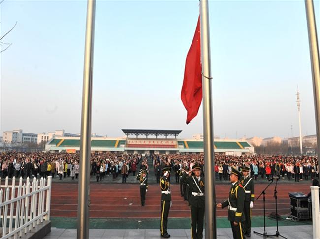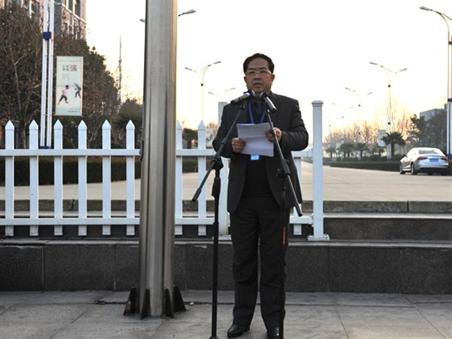 1月13日上午,我校在校运动场举行2017年第一次升旗仪式。校长、党委书记史余强在仪式上发表了热情洋溢的国旗下讲话。张彦芝副校长主持典礼。校领导班子成员、中层干部及全校师生共同参加仪式。