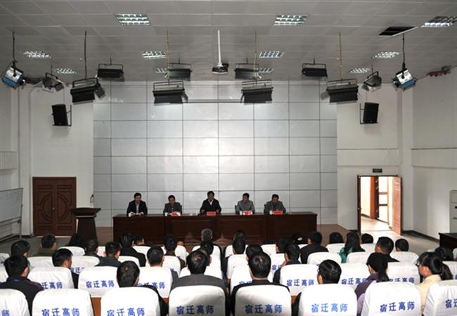 10月25日上午,市委教育工委在我校综合楼三楼东会议室召开学校干部会议,市委组织部青干处处长杨光利在会上宣布了中共宿迁市委关于韩勇任我校党委副书记的决定,同时宣布了市委组织部关于陆剑波、杨中安两位同志任校党委委员的决定。市委教育工委书记、教育局长汤成军、我校党委书记、校长史余强出席会议并分别讲话。学校领导班子成员及中层干部参加大会。市委教育工委副书记庄永之主持会议。