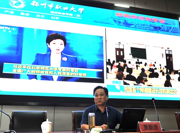 继典礼之后,扬州职业大学学工处处长袁新进教授开设了《弘扬师德 铸就师魂》讲座。在随后几天里,来自省内外及校内的多名专家学者将陆续开设专题讲座。