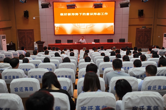 为全面贯彻习近平新时代中国特色社会主义思想和全国宣传思想工作会议精神,深化党员干部和广大教职工对意识形态工作重要性的认识,加强党对意识形态工作的领导,全面落实党的意识形态工作责任制,9月7日,在学校理论学习月例会上,校党委邀请市委宣传部理论处处长罗敦洲为全体教职工作《做好新形势下的意识形态工作》专题讲座,校党委班子成员、全体教职工参加学习会,校党委副书记韩勇主持会议。
