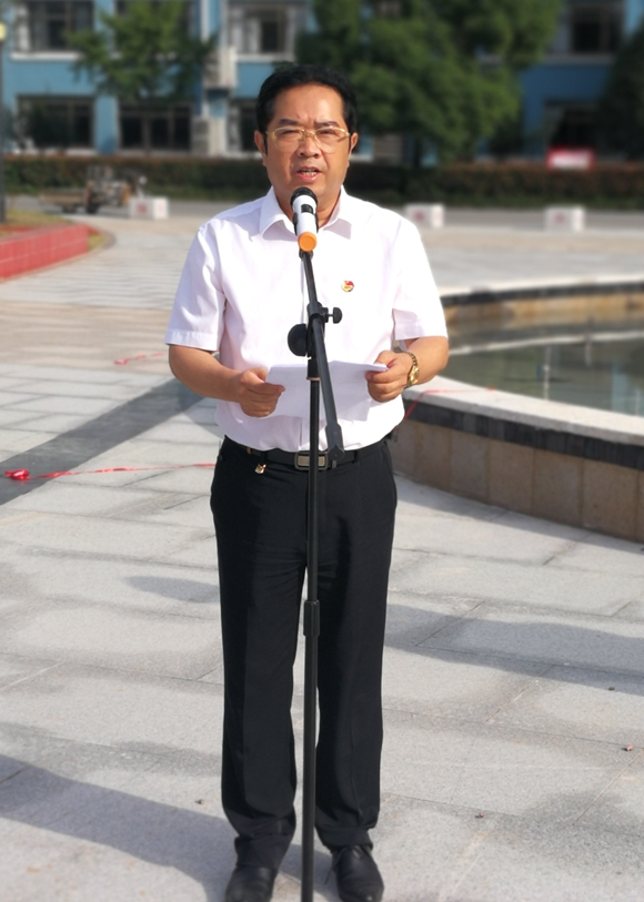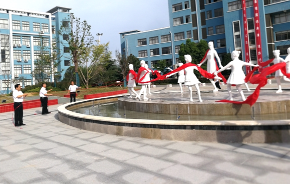 张劲扬在讲话中深情回顾了学校的发展历程和取得成绩,把学校的成绩归因于几代宿师人对教育事业的忠诚和对学生的拳拳爱心。“师爱”群雕是一名教师带领九名幼儿欢笑共舞形象,作为学校标志性雕塑,预示着学校教育事业将开启新的征程。
