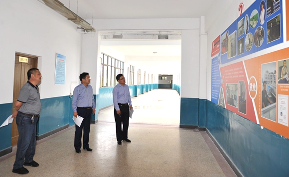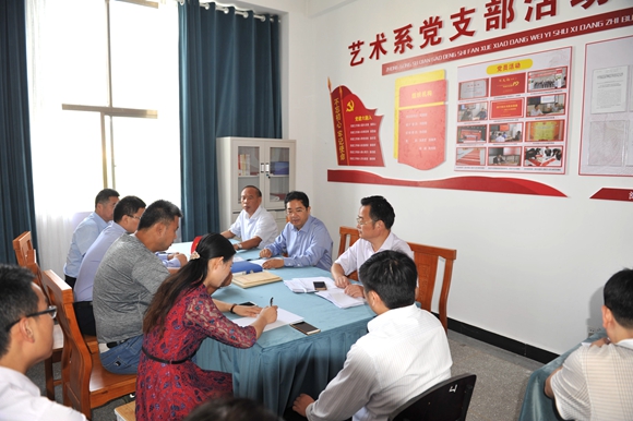 9月22日上午,校党委书记、校长史余强带领副校长陆剑波、纪委书记杨中安、相关部门及各系负责人检查各系文化墙建设情况并现场点评、打分。