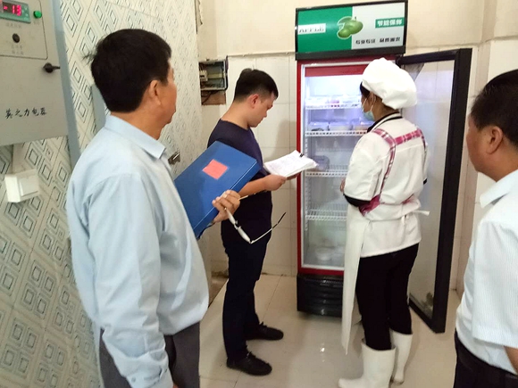 检查组就学校门卫工作是否规范、门卫工作间是否配备必要的警用设备、门卫工作人员是否能熟练使用安全设施、设备,学校是否配备与110或辖区派出所相连的一鍵报警装置等进行了现场检查。随后,检查组分别检查了学生宿舍、食堂和安全工作台帐。