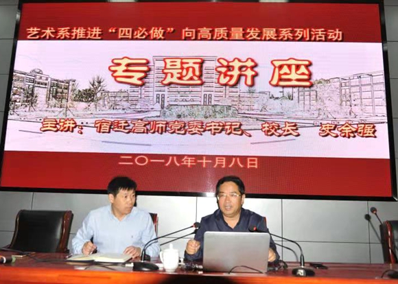 10月8日下午,校党委书记、校长史余强为学校艺术系全体师生在综合楼东三楼会议室以“坚持‘四必做’,养成好习惯”为题开设讲座。艺术系周善超主任主持讲座。