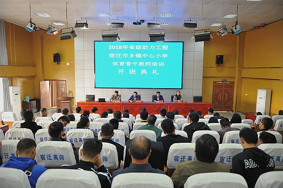 10月23日上午,省市合作项目“助力工程”宿迁市乡镇中心小学体育骨干教师培训班开班典礼在我校综合楼三楼东会议室隆重举行。市教育局陈向阳副局长在典礼上讲话,我校党委书记、校长史余强在典礼上致辞,校党委副书记韩勇主持典礼。校培训中心主任严芳及来自各县区乡镇中心小学的60名体育骨干教师参加典礼。