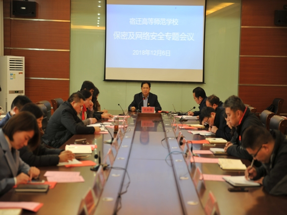 12月6日下午,宿迁高师在综合楼三楼西会议室召开保密及网络安全工作会议。校党委书记、校长史余强在会上讲话。学校各部门负责人及网络安全管理员参加会议。会议由校党委委员、办公室主任刘芝兵主持。