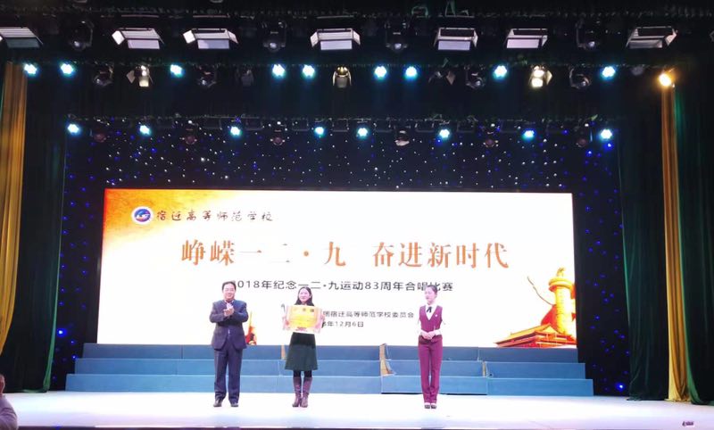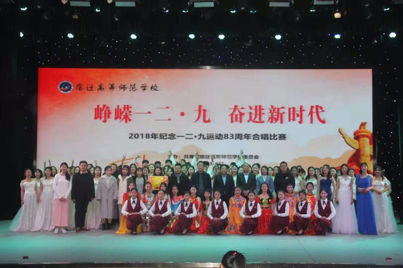 为发扬传统,引导学生忆“一二·九”峥嵘岁月,明当代青年责任和使命,培养新时代具有家国情怀的社会主义建设者和接班人。宿迁高等师范学校于12月6日18:30分在大礼堂隆重举行“峥嵘一二∙九,奋进新时代”纪念一二∙九运动83周年合唱比赛。我校党委书记、校长史余强,党委委员、纪委书记杨中安,党委委员、办公室主任刘芝兵出席本次比赛。评委则有中国声乐家协会会员、宿迁学院音乐系副教授、宿迁市音乐家协会副秘书长杨柳松;宿迁学院大学生艺术团指导教师、人武部主任王敏;须迁小大姐合唱团团长、宿迁钟吾国际学校音乐教师卢明静;宿迁开放大学音乐教师仇远;南师附中宿迁分校音乐教师胡雯芮担任。我校中层以上干部及部分师生代表观看本次比赛。