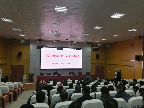 12月19日下午,教务处在综合楼三楼报告厅召开2018年“教学质量月”活动总结会,全体教学人员参加会议,校党委委员、副校长陆剑波主持会议,教务处负责人南志国进行总结讲话。