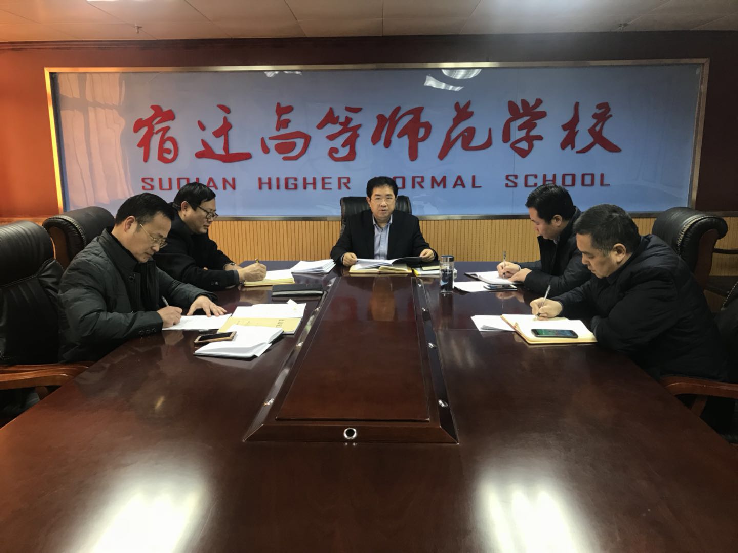 12月29日上午,宿迁高师党委在综合楼七楼会议室召开专题会议,学习贯彻中国共产党宿迁市第五届委员会第七次全体会议。校党委书记、校长史余强主持会议并作讲话。校党委班子成员参加会议。