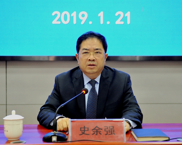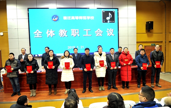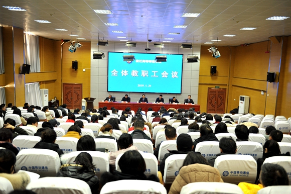 1月21日上午,宿迁高师在综合楼三楼东会议室召开2019年第一次教职工大会。党委书记、校长史余强在会上做工作讲话,校党委副书记韩勇主持会议。校领导班子全体成员、中层干部及全校教职工参加会议。