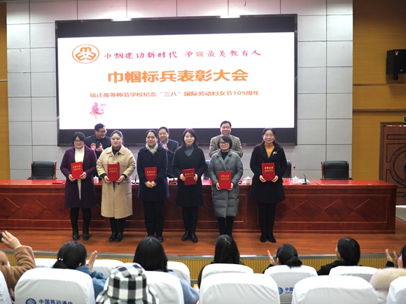 六是召开巾帼标兵表彰大会。对评选出的学校“巾帼标兵”和“最美家庭”进行颁奖。校党委书记、校长史余强在会上发表热情洋溢的讲话,党委副书记韩勇参加会议,副校长、工会主席张彦芝主持会议。