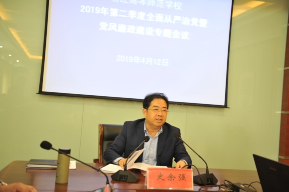 为进一步增强党员干部廉洁从政意识,筑牢拒腐防变思想防线,营造风清气正的政治生态。4月12日下午, 宿迁高师纪委在综合楼三楼西会议室开展党风廉政警示教育活动。校党委书记、校长史余强在活动上讲话,校纪委书记杨中安主持活动。校级领导班子、中层干部共同参加活动。