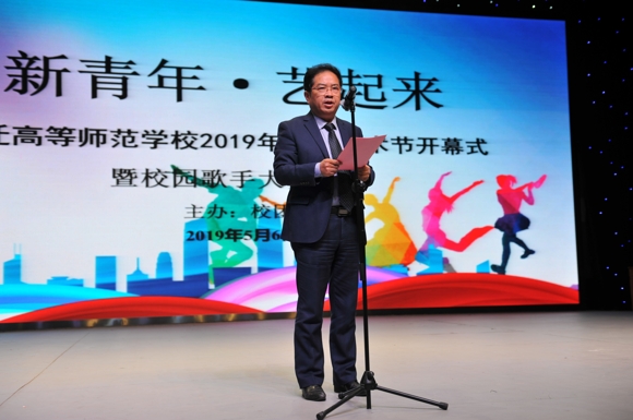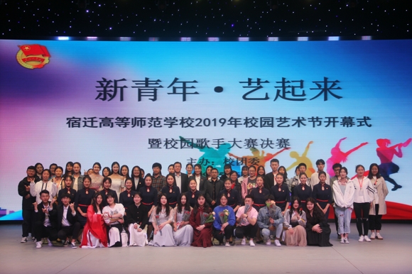 5月6日晚,“新青年ž艺起来”--宿迁高师2019年校园艺术节开幕式暨校园歌手大赛决赛在该校大礼堂成功举办。校党委书记、校长史余强在开幕式上致辞。校声乐教师何胜刚、孙骈、胡小兵、刘言娇、宋娇娇担任大赛评委。校领导班子成员、中层干部、各系团总支学生书记、各班级团支书以及部分师生代表共同观看演出。