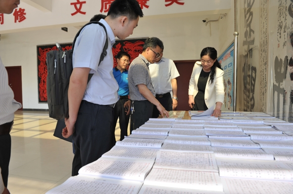 马斌一行参观了学校书画展厅、通用技能实训室、学前教育研究所、书画名师工作室等处,详细察看了学生“四必做”作品展并给予充分肯定。