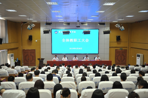 6月28日上午,我校在综合楼三楼东会议室召开学期末全校教职工大会,校党委书记、校长史余强、党委副书记韩勇分别在会上讲话,校领导班子成员、全校教职工出席大会,陆剑波副校长主持会议。