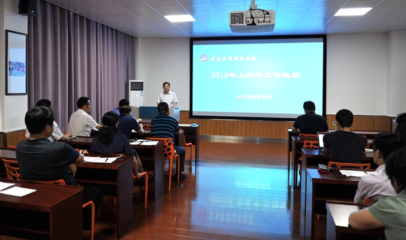 6月30日下午,我校党委在校实训楼二楼远程观摩室召开2019年上半年工作述职会。党委书记、校长史余强主持会议并做点评。校领导班子成员和全体中层干部参加会议并参与评分。