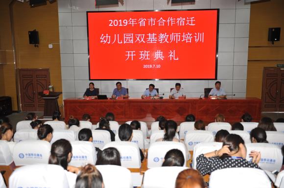 2019省市合作项目“助力工程”--宿迁市乡村幼儿园教师“双基”培训于7月10日上午在我校综合楼三楼会议室顺利开班。市教育局陈向阳副局长、宿迁高师党委书记、校长史余强出席典礼并分别讲话;张彦芝副校长主持典礼。市教师发展学院陈良政院长、校培训中心主任严芳以及来自全市各县区的50名乡镇幼儿园教师参加开班典礼。
