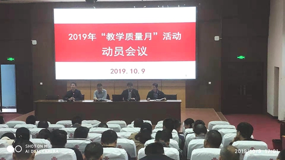 10月9日下午,我校召开2019年度“教学质量月”活动动员会。校党委委员、副校长陆剑波到会讲话,全体教学人员参加会议。教务处夏立标同志主持会议。
