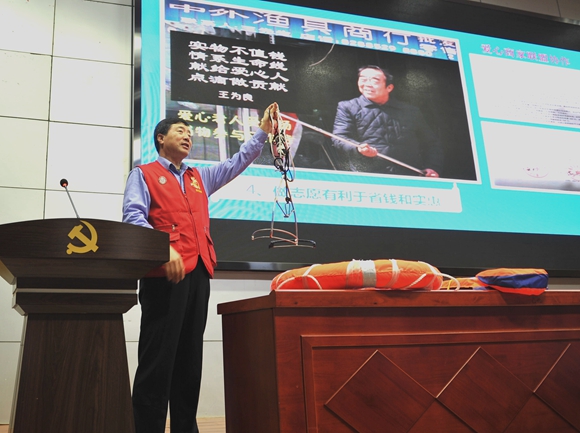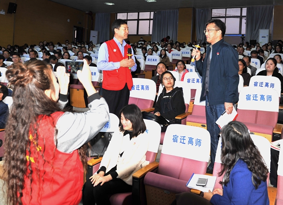 报告会上,师生共同观看了《王爱东:为爱——义不容辞》专题片。王爱东以朴实的语言、感人的细节、真实的案例,讲述了他们面对救援中的问题、困难、挫折、质疑、误解,如何坚定理想、信念、决心和意志的心路历程;讲述了他们把志愿当成事业,把义务当成使命的高尚情操;讲述了他们“安全从孩子抓起,平安须救防并重”的“安全下基层”机制;讲述了他们从一根竹竿、两只救生圈,发展到今天的“水陆空立体救援”先进做法。报告讲出了宿迁人的大爱之心,讲出了人们深植内心的中国善良、中国智慧和中国力量。他的爱民情节和奉献精神深深感动着在场师生,赢得大家一次又一次发自内心的热烈掌声。