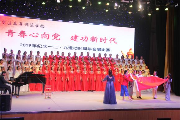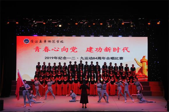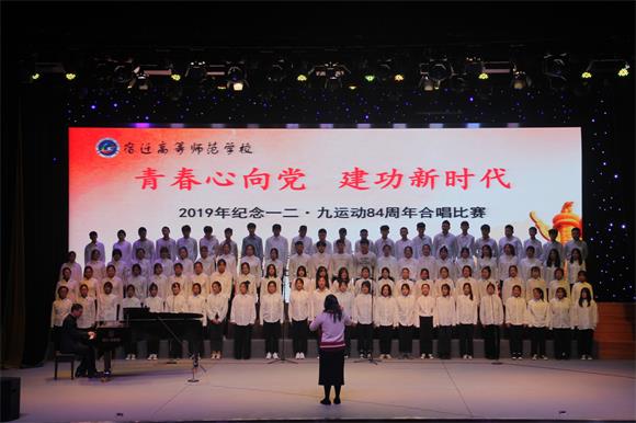 12月9日晚,宿迁高师 “青春心向党 建功新时代”——纪念一二·九运动84周年合唱比赛在校礼堂隆重举行,校党委书记、校长史余强等领导班子成员、全校中层以上干部及部分师生代表800余人共同观看本次比赛。