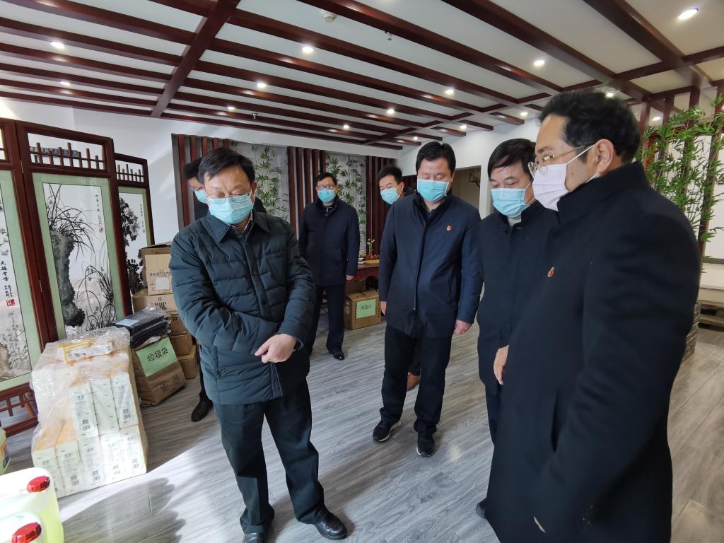 薛启书副市长实地检查了我校防控物资储备情况,详细了解了我校线上教学和线上学生管理、师生健康监测和校内职工宿舍区人员排查摸底等工作开展情况,充分肯定了我校前期防控工作取得的初步成效。史余强就学校疫情防控工作和各项具体措施落实情况作了汇报。