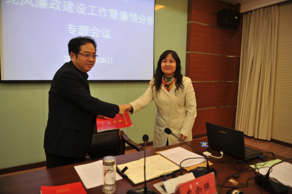 与会同志共同观看了市纪委警示教育视频;校党委成员在会上作了“一岗双责”履职思考及廉情分析;校党委委员、纪委书记杨中安代表校纪委作了2019年学校党风廉政建设工作报告。校纪委副书记高凯在会上详细解读了学校党风廉政建设三份文件;校各职能处室负责人在会上签订了党风廉政责任书;与会同志分别填写了党风廉政谈话记录表。