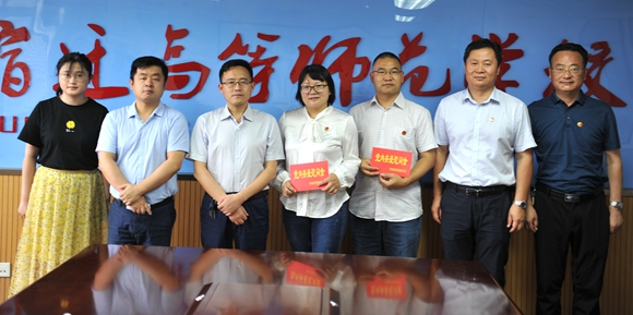 6月29日上午,在中国共产党99华诞即将到来之际,宿迁市委教育工委庄永之副书记一行在校党委副书记韩勇、校党委委员、组织人事处处长刘芝兵陪同下到我校慰问党员代表许子柱、葛晓芳。