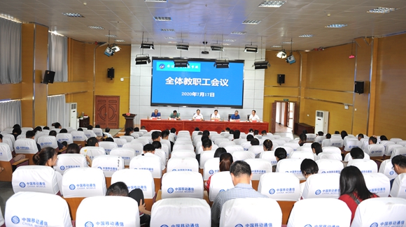 7月17日上午,我校召开学期末全校教职工大会,校党委书记、校长史余强在大会上讲话,党委副书记韩勇主持会议。全体校领导、中层干部和教职工在二个会场集中参会。