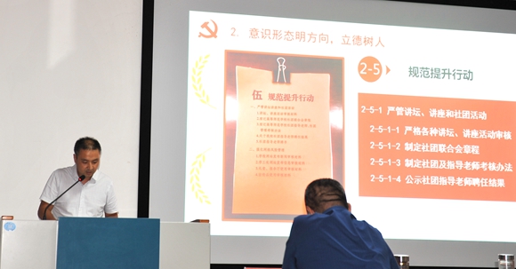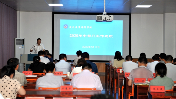 7月17日下午,我校召开2020年度党支部及部门工作年中述职会。校党委副书记韩勇在会上讲话。学校9个党支部书记、19个中层部门负责人在会上述职,党委书记、校长史余强等校领导班子全体成员、中层正职干部共同参加评分。