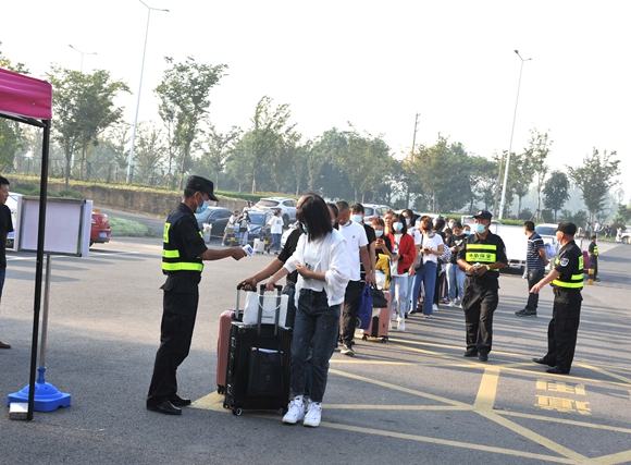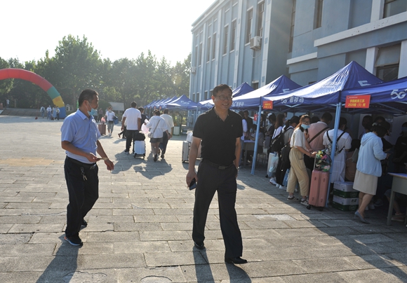 校党委副书记韩勇带领值周组细致检查新生报到各项工作,从严从细检查疫情防控、食堂卫生、物品领取、教室宿舍卫生等相关工作。学工及各系负责同志会同保卫处人员在校南门细致测量入校人员体温,检查防疫二维码,做好车辆及人员疏导等工作。