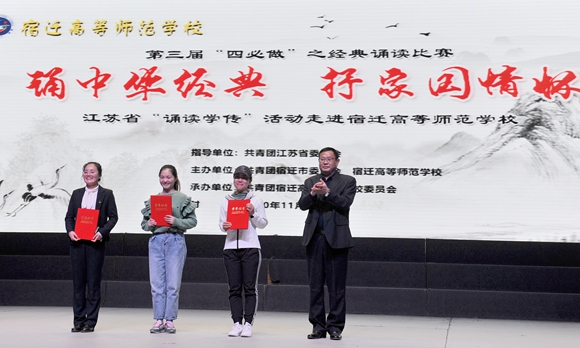 11月10日晚,2020年江苏省“诵读学传”活动走进宿迁高等师范学校暨校“四必做”之“诵中华经典,抒家国情怀”经典诵读比赛在该校大礼堂举行。校党委书记、校长史余强等校领导班子成员、中层干部及全校师生代表共同观看比赛。
