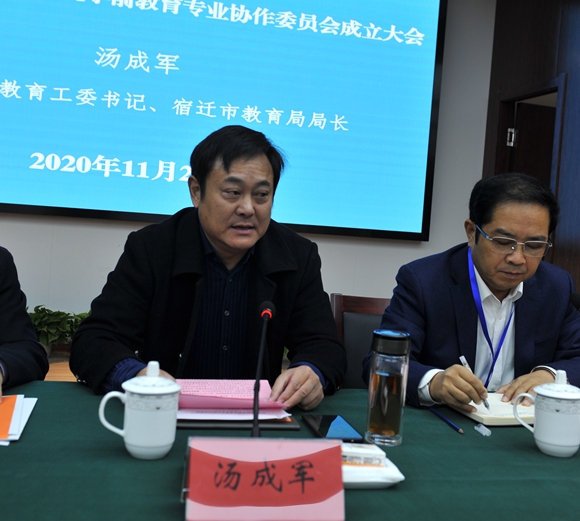 汤成军在致辞中对专业协作委员会的成立表示祝贺,介绍了宿迁教育尤其是职业教育近年来跨越发展的基本情况及取得成绩。介绍了宿迁高师近年来发展情况及取得成绩。希望宿迁高师认真履行好理事长单位职责,积极引领学前教育专业集群化、资源集聚化、管理集约化发展,进一步提升学前教育专业竞争力、服务力和高质量发展能力。