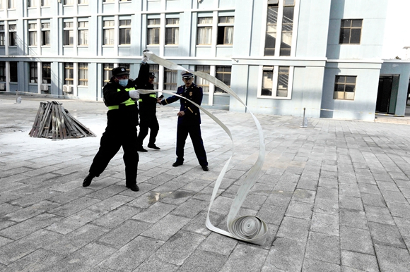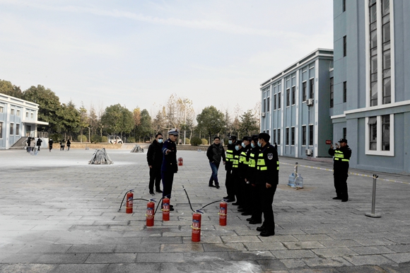 随后,湖滨消防大队钱远琥参谋为师生们讲解了灭火器材正确使用方法,现场师生踊跃参与现场演示活动。消防人员同时对学校安保人员进行了灭火器械使用培训,指导他们如何规范使用灭火器及消防水管等消防器材。