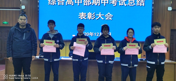 12月2日晚,我校在学校二号教学楼学术报告厅召开综合高中部期中考试总结表彰会,校党委委员、副校长陆剑波到会讲话。会议对20名学习标兵、学习之星、进步之星同学进行了表彰并分别颁发一、二、三等奖。金煜山、朱颖、李斌三名同学在会上交流了学习经验。