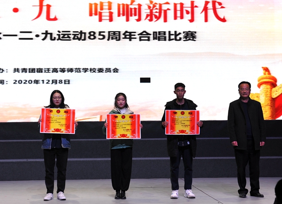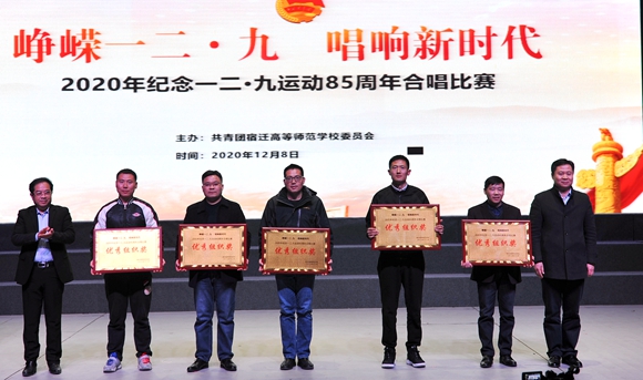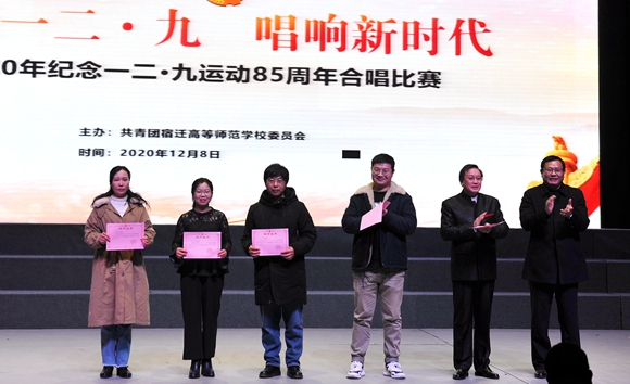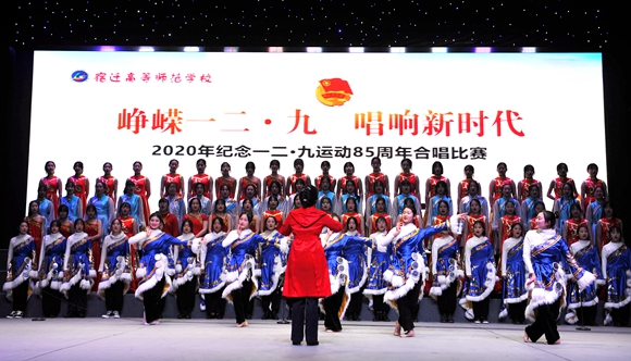 12月9日晚,我校 “峥嵘一二·九 唱响新时代”纪念一二·九运动85周年合唱比赛在校礼堂隆重举行,校党委书记、校长史余强等校领导班子成员、全校中层干部及部分师生代表800余人观看比赛。