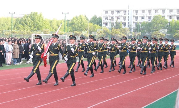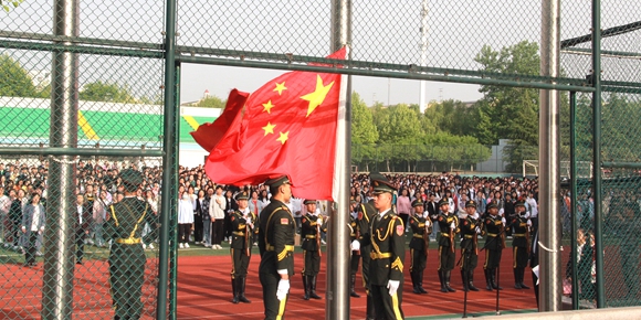 学校邀请宿迁泽达学院国旗护卫队参加升旗仪式,他们步伐整齐,口号嘹亮,伴随着庄严的国歌,鲜艳的国旗冉冉升起。